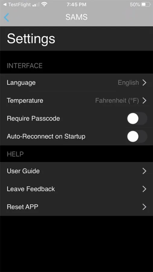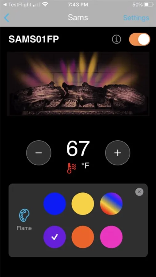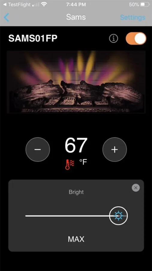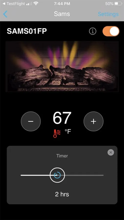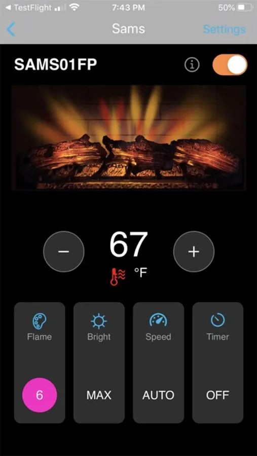 - Enable or disable the fireplace to connect to Bluetooth automatically on app startup