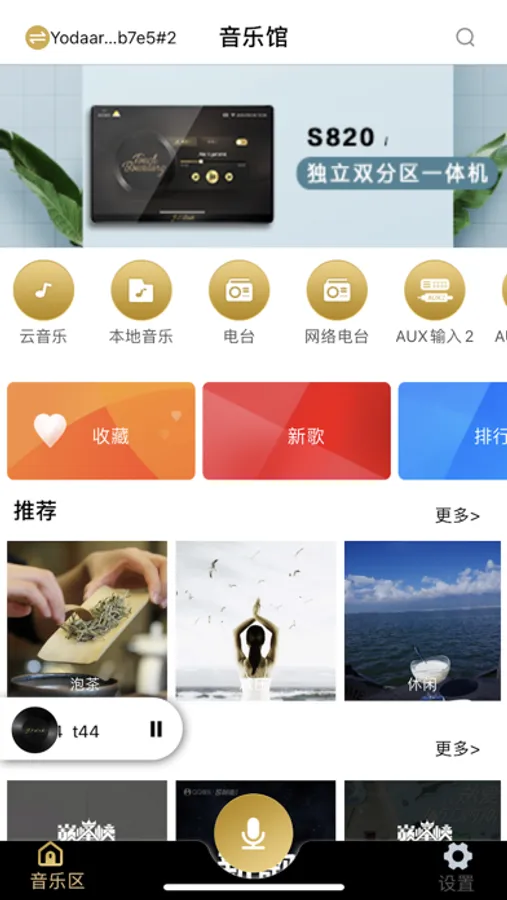 不同音乐区的音源选择、开关、音量可单独设置