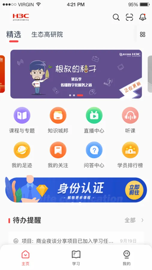 根据岗位技能及个人兴趣,收听收看个人专属的推送课程;