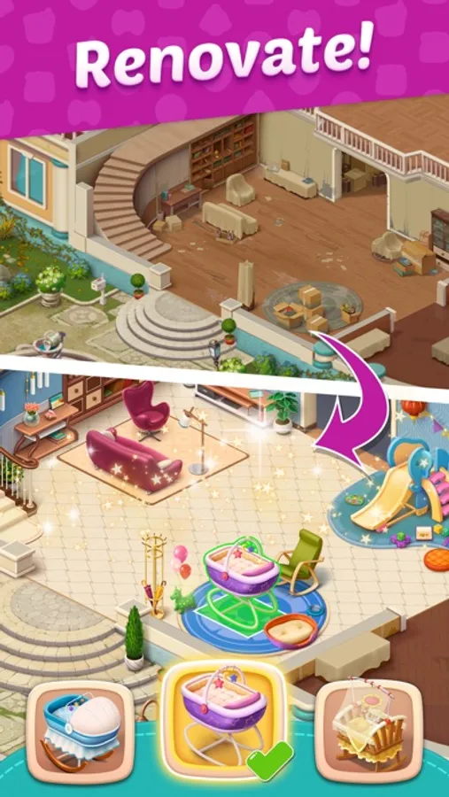 Free games? Baby games? Family simulation games? All in here. You can enjoy our fun and addictive match-3 decorating puzzles game while renovating your mansion and dressing up your baby with all kinds of costumes at the same time!