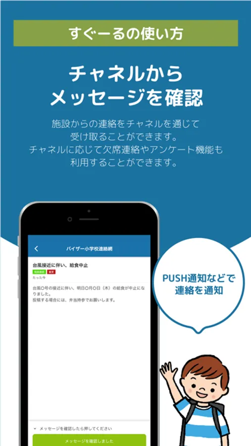 け取ることができます。お子様が通っている学校のチャネル、お住まいの地域のチャネ