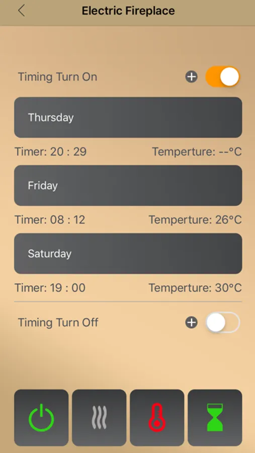 Aflamo is an intelligent electric fireplace control app. It is equipped with function controls of On/Off, Flame color, Flame brightness, Ember-bed color, Ember-bed Brightness, Heating, Timer, Temperature, Flame Speed and so on.