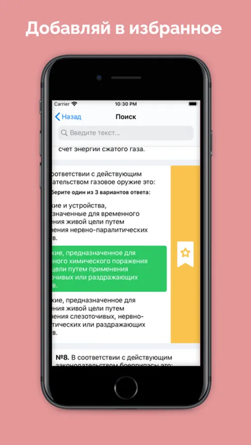 Избранное - добавляй вопросы в список, чтобы не забыть повторить.