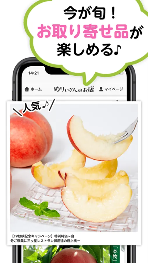 お取り寄せECサイト「めりぃさんのお店」の産直品を購入することができます。
