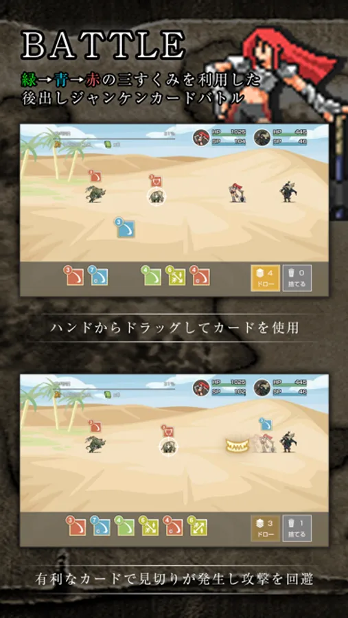 有利なカードを出すと見切りが発生し、攻撃を回避できる