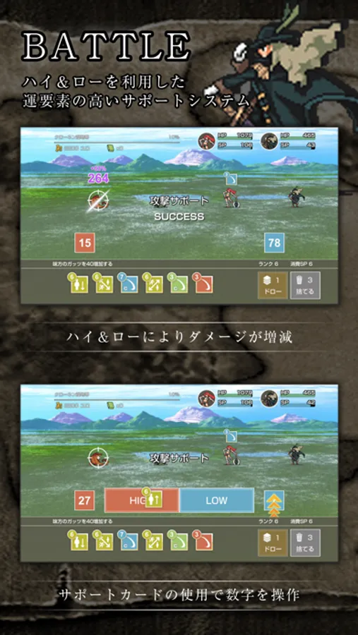 ハイ&ローを的中させるとダメージを増減する