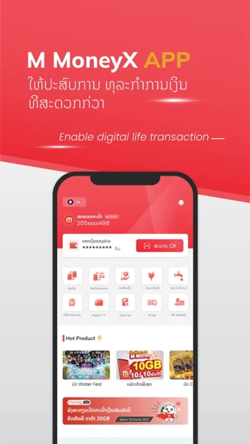 M moneyX is an e-wallet that offers a variety of financial services in Laos, such as money transfers, bill payments, and purchases. It is a platform serviced by Lao Mobile Money Sole Company Limited which is a subsidiary of Lao Telecom and does not require a traditional bank account. It has a simple registration system that allows users to sign up with just their mobile numbers.