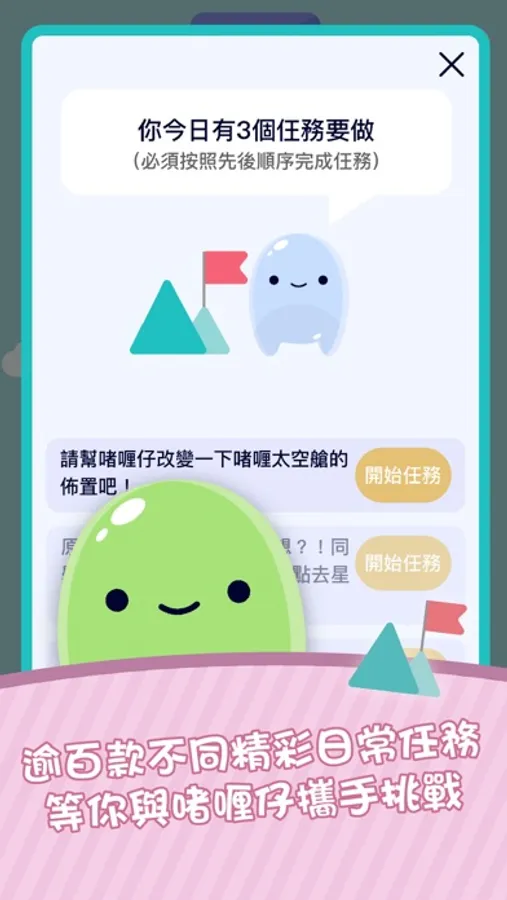 與啫喱仔一起完成每日三個的星際任務來獲取啫喱幣,讓你LV不停UpUpUp!