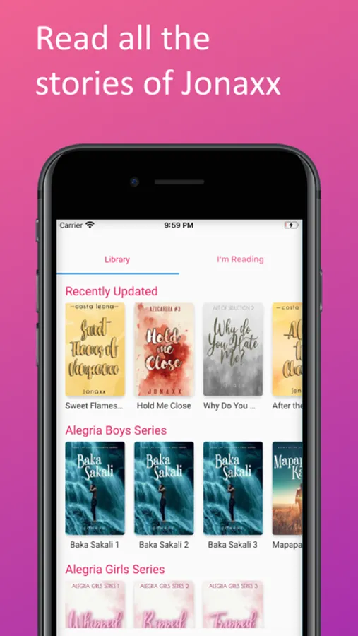 Jonaxx Stories is where you can read free stories from Jonaxx. Jonaxx is a Filipino author known for her published works and free stories online. Discover her new works and comment on the chapters on this application made for Jonaxx Stories Lovers.