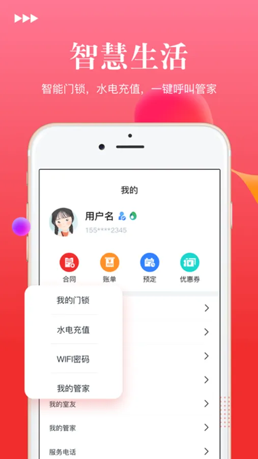 8. 智能门锁:已入住租户可查看公区密码,房间密码可一键滑动开门