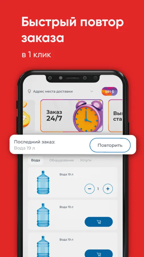 Скачайте бесплатное приложение на телефон и заказывайте чистую воду в удобное время!