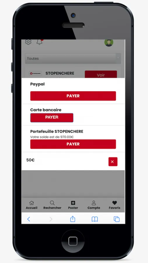 STOPENCHERE est l'application qui va changer votre quotidien!Achetez et vendez en toute tranquillité dans de multiples catégories : animalerie, art-antiquité, auto, moto, bateau, beauté, bien être, parfum, bébé, bijoux-montre, bricolage, céramique-verre, collection, dvd, électroménager, ordinateur, hight tech, téléphone, instruments de musique, jardin-terrasse, jouets-jeux, jeux video, console, livre, bd, meubles, décoration, sport, vacance, vêtement, accessoire, ... Avec STOPENCHERE vous pouvez acheter ou vendre vos produits neufs ou d'occasions en achat immédiat ou en enchère!Profitez en plus de notre système de paiement totalement sécurisé pour l'acheteur et le vendeur.Avec STOPENCHERE, il n'a jamais été aussi simple de faire des bonnes affaires et de gagner de l'argent!Comment ça marche ?Vous vendez un produit ?1. Postez gratuitement votre offre en achat immédiat et/ou en enchère.2. Les clients enchérissent ou vous l'achètent immédiatement. 3. Finalisez la transaction en toute tranquillité grâce au système de paiement sécurisé.Vous recherchez un produit?1. Consultez toutes les annonces et filtrez votre recherche selon le prix, la catégorie,...2. Achetez immédiatement ou enchérissez3. Finalisez la transaction en toute tranquillité grâce au système de paiement sécurisé.Téléchargez notre app dès maintenant!