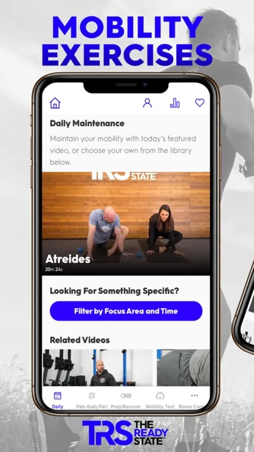 The daily workouts range from 5-30 minutes and will help you address and improve your biggest limitations so you can feel good, train harder, and do all the things you love better. Our goal is to help you be READY for anything that life throws your way.