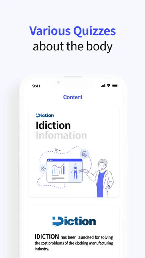 Size It helps you to know your body status. It is accurate as a tape measure. Don't worry! You can also enjoy the extra fun like a Health consult, Shopping, and Quizzes.