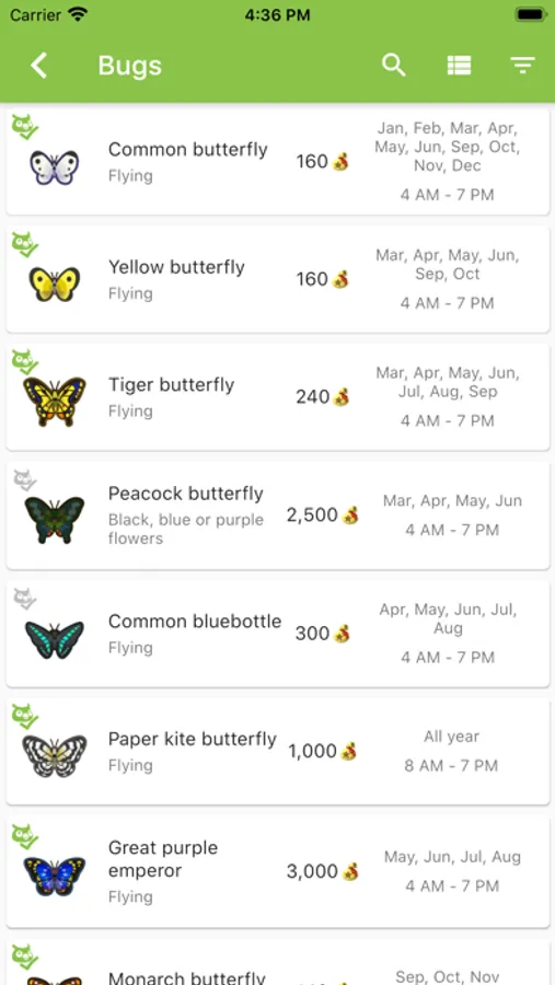 - Track and see what bugs or fishes you can catch at any moment, even in real-time!.