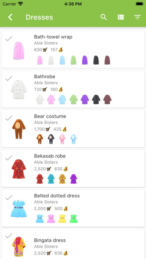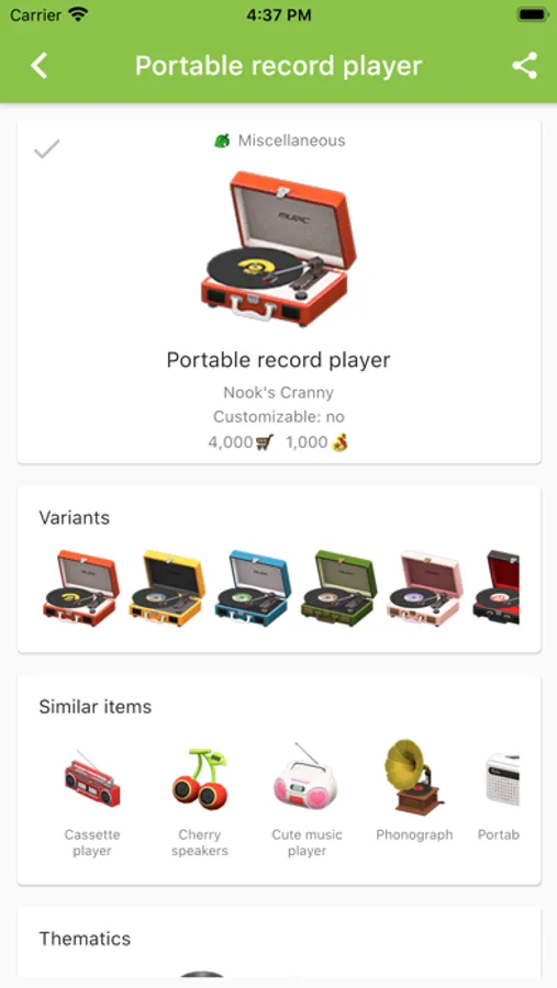 - The complete database allows you to browse furniture, clothes, fences, recipes, etc. Also, you can share any item with your friends directly from the app!
