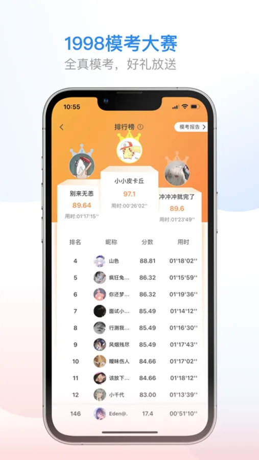 4. 模考大赛:定期模考,差缺补漏;并支持随时模考,检验学习效果,实现高效备考。