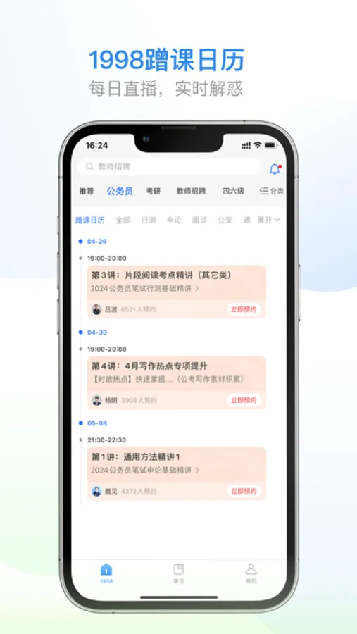 涵盖公务员、事业编、教师、考研、英语四六级、国央企、三支一扶、办公软件等各类职业教育考试,让你省时省力,轻松备考。