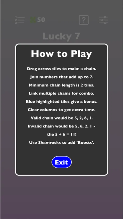 Fast paced number puzzle game - how many ways can you make the number 7 and how many combos can you get.