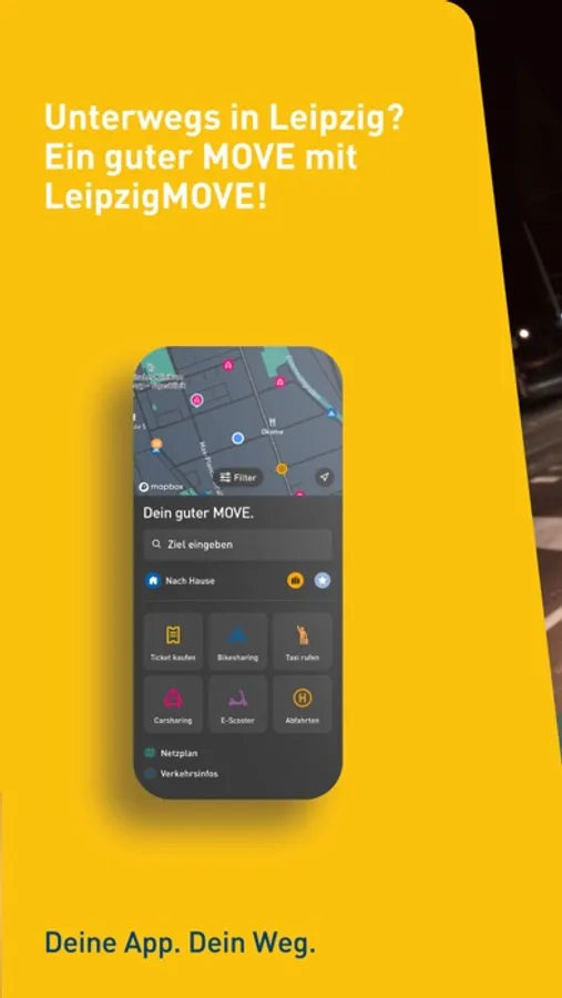 The LeipzigMOVE app always gets you to your destination easily, quickly and reliably - whether by bus, train, car, e-scooter, taxi or bicycle. Download now and try it!