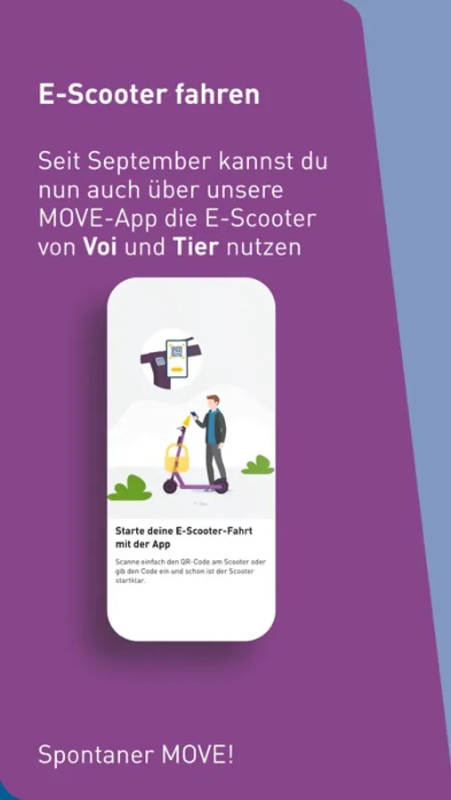 • Book e-scooters from 2 providers: TIER and Voi. Simply use the map to find an e-scooter at the nearest mobility station, scan the QR code and off you go
