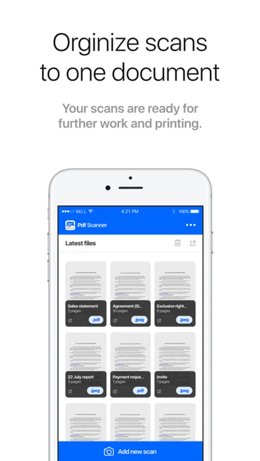 Easily scan, save and share any document in PDF or JPEG format.Scan, print and manage documents with your iOS device!