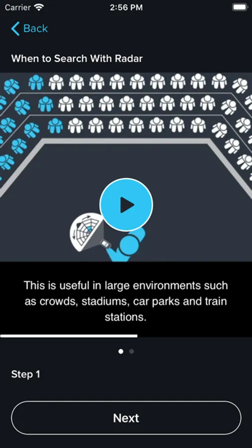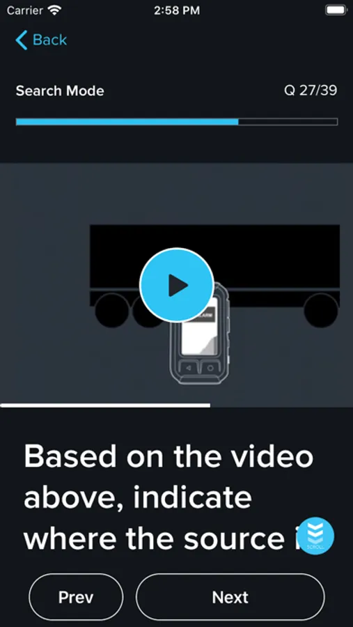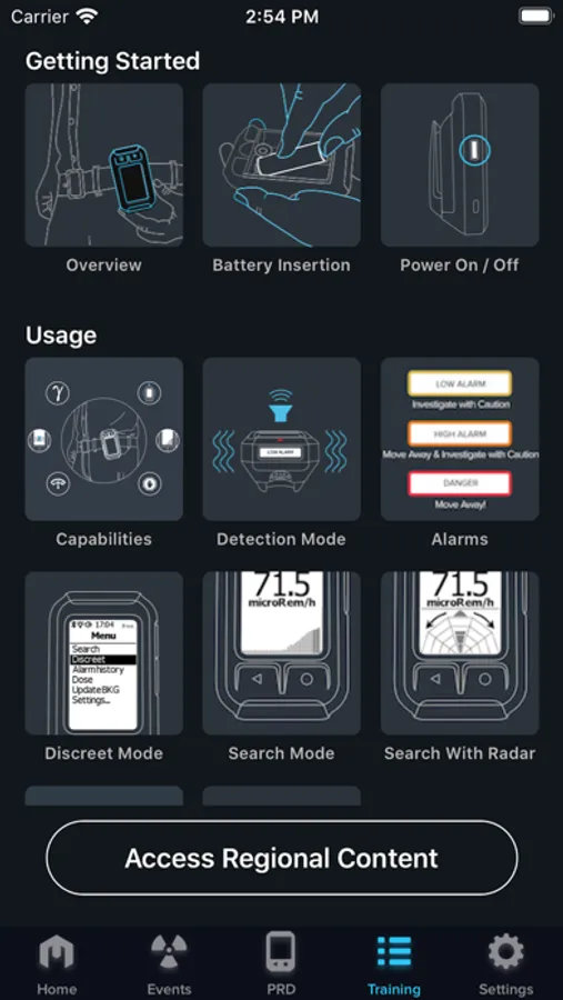 The AccuRad Training Application provides interactive training content including tutorials and videos. For the organizations and users operating the AccuRad, this Application ensures the best level of understanding of the device, its capabilities, and the actions to take in case of an alarm. It also demonstrates how to safely and efficiently localize a radioactive source in different scenarios. The “take a test” button gives access to an interactive evaluation, including realistic situations where the user is trainee is asked how to proceed. There is a possibility to send the results to a training supervisor by email in order to track the skills of the AccuRad users.