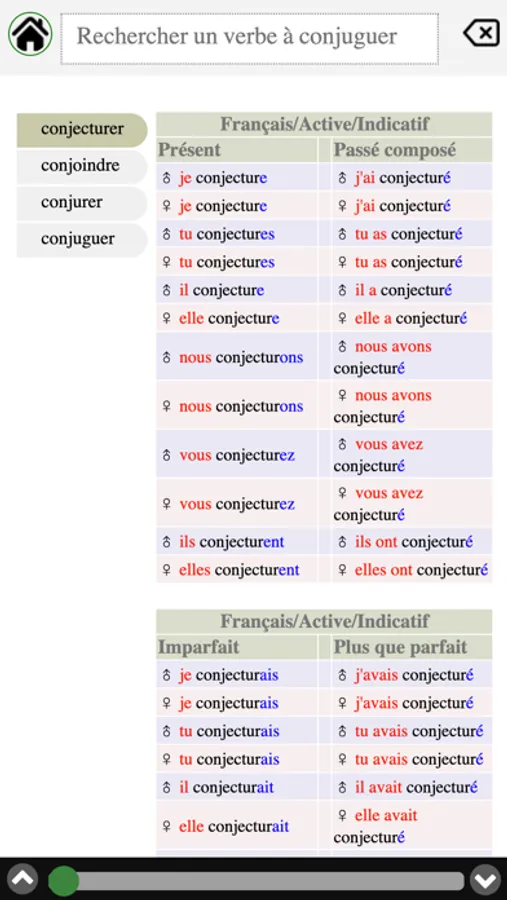 Multi-language conjugation, support Arabic English French Turkish and Russian.