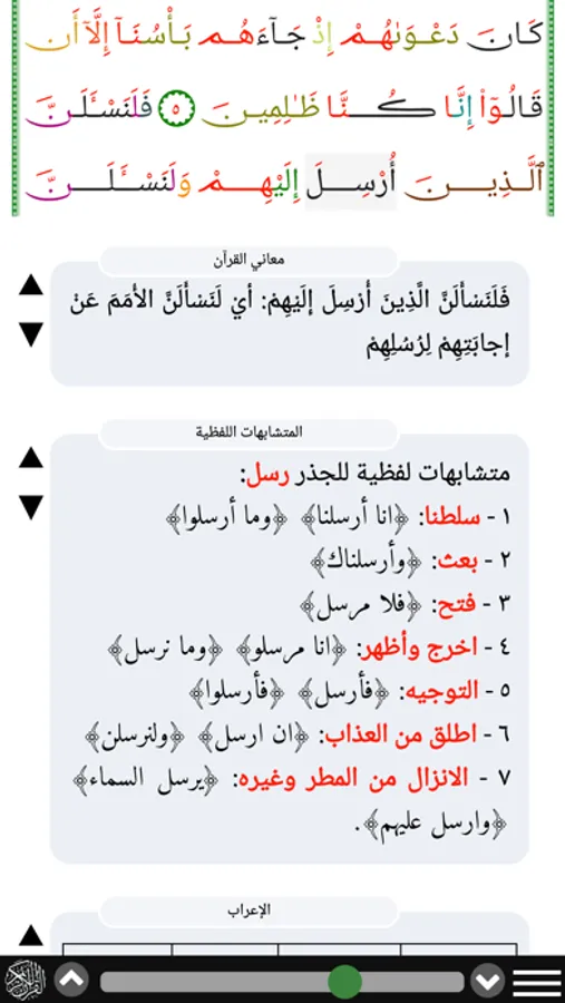 Assiraj app works without internet connection, and it support infinite of verbs. With the 5 qurans calligraphics scripts: othmani hafs and warsh and qaloon, Imla'i, tajweed , Assiraj app will help the learner. Assiraj will also support the quran erab, and will color arabic words switch the grammar.