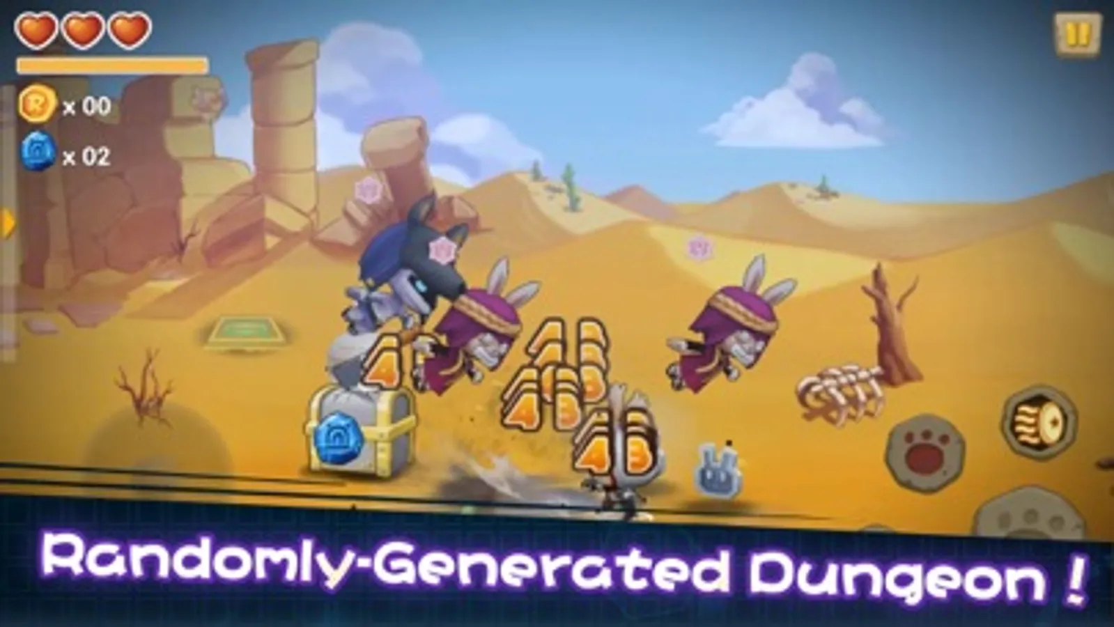 Try to get as far as possible in a dungeon with randomized items, weapons, and encounters. Your hero is upgraded along the way (both visually and gameplay-wise) as you find better weapons, items, magic powers and fight harder and harder monsters.