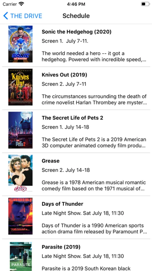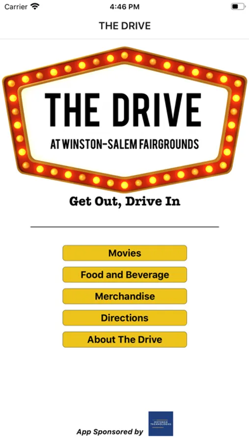 The Drive App is an application supporting The Drive at Winston-Salem Fairgrounds, a drive-in theater North Carolina. Using the app, the user can purchase tickets to upcoming shows, purchase concessions, merchandise, get directions to the venue and find out about upcoming events.
