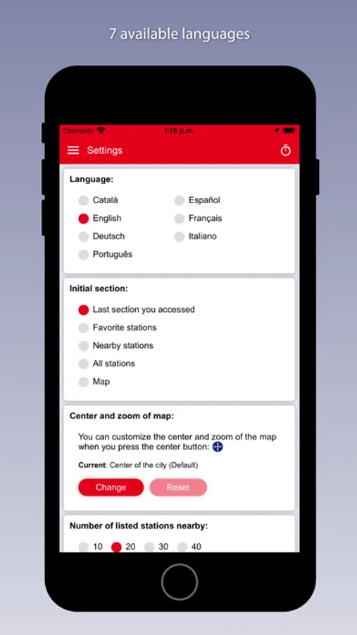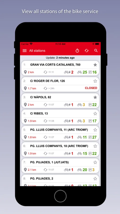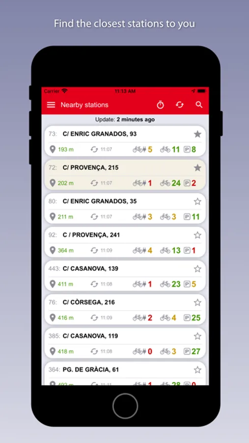 - List of stations closest to you according to your current position.