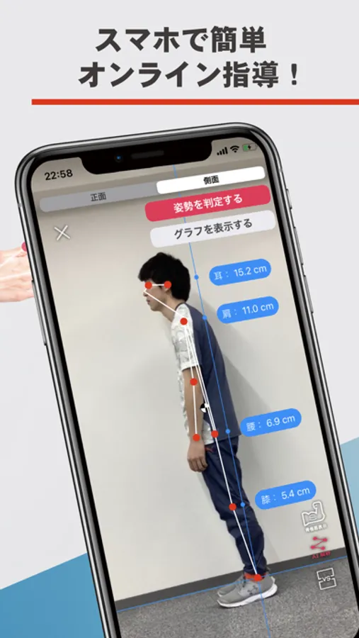 Sportipが独自で開発した最先端のAI(人工知能)を駆使した画像解析機能により、姿勢解析・トレーニング解析・アライメントテストなどを可能にします。