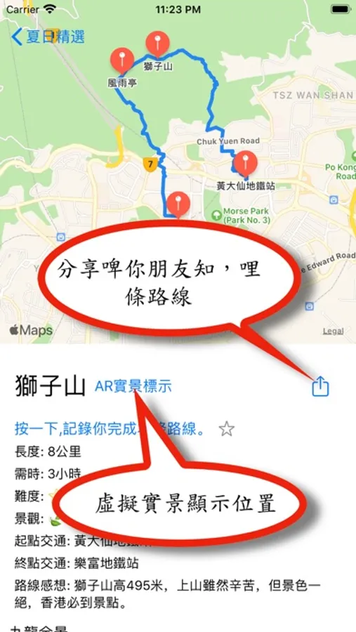 我地總運用左虛擬實景技術AR,去展示香港的山名,希望可以為行山人士提供更容易的方式,去了解行山路線的位置。