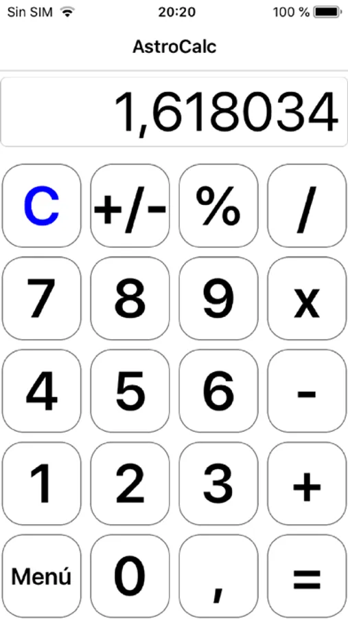 En modo vertical se presenta una calculadora simple, que puede ser útil para la mayoría de personas. Si la giras horizontal, se presenta una calculadora mas avanzada con potencias, raíces y funciones geométricas.