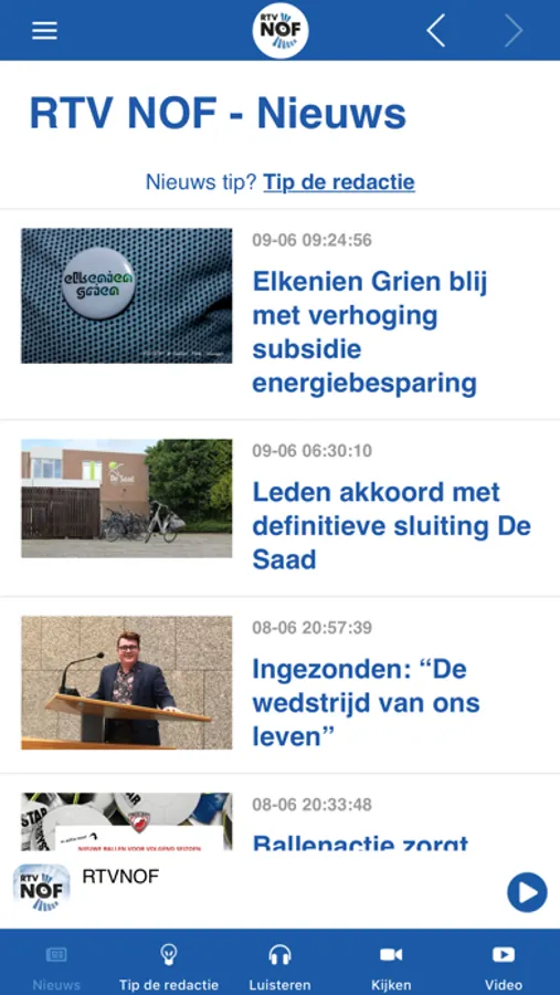 Met de app van RTV NOF heb je overal en altijd toegang tot het laatste regionieuws uit Noardeast-Fryslân en Dantumadiel. Ook kun je luisteren en kijken naar onze programma's.