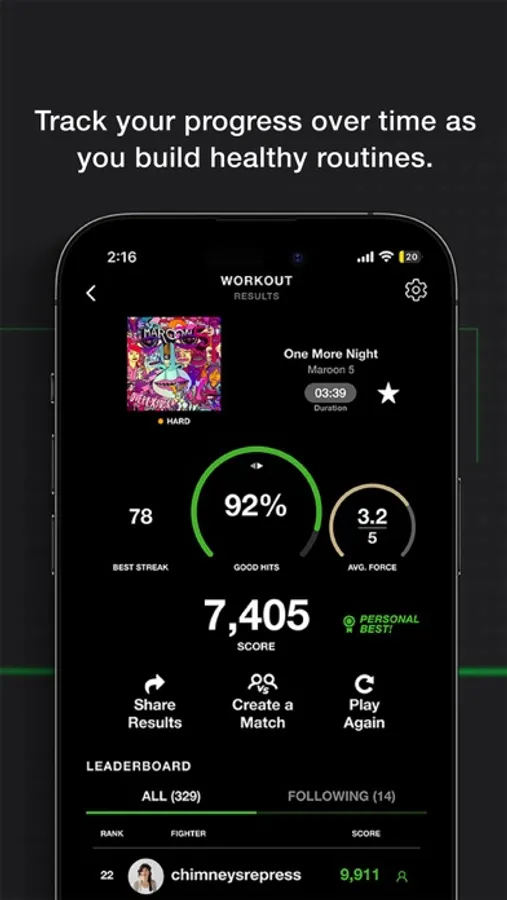 Competition fuels progress as you rack up your score, punch count and compete in challenges. Get credit for good hits, accuracy, and power. Challenge friends and compete in 1 vs 1 matches. Follow your friends’ progress and motivate each other to work harder.