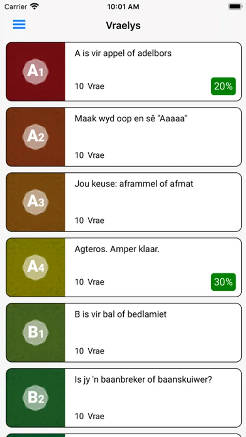 Not for the faint hearted. Test your knowledge of difficult Afrikaans words and share your accomplishment with your friends.