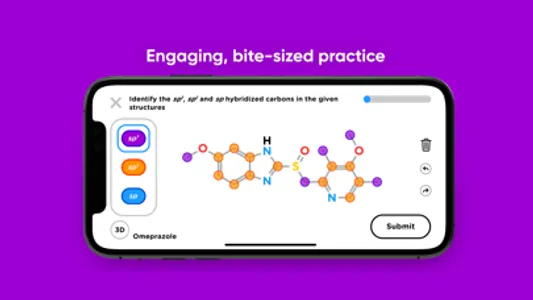 Bite-sized sessions deliver varied practice problems and clear feedback so you can stop memorizing and start understanding! Problems become progressively harder to keep you leveling up your knowledge. Simple and intuitive design lets you focus on improving your skills. Switch between 2D or 3D visualization in just one tap. Fun rewards make studying delightful.