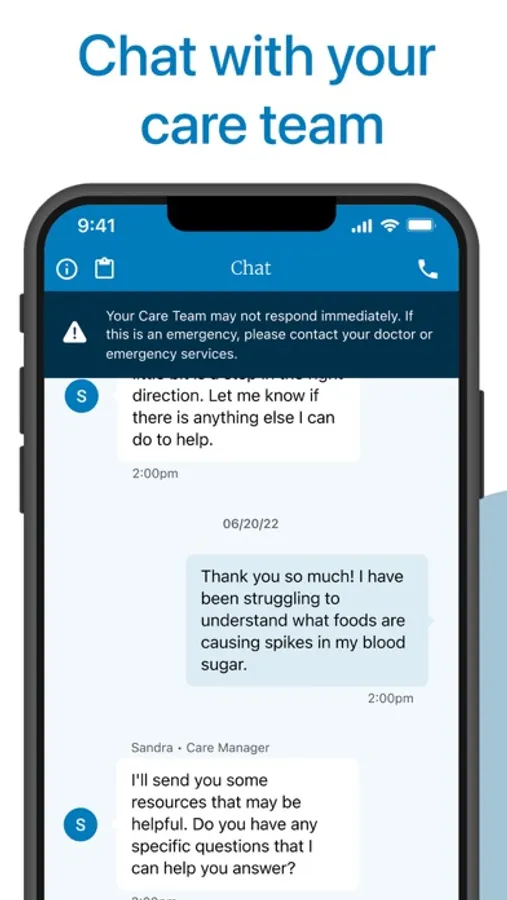 Seek a doctor’s advice before making any medical decisions. This app is designed for education and to provide support between provider visits. If you're enrolled in an eligible care program you may connect a glucometer to share readings with your care management team, but should continue to check with your doctor before making any changes to diet, exercise, or treatment plan.