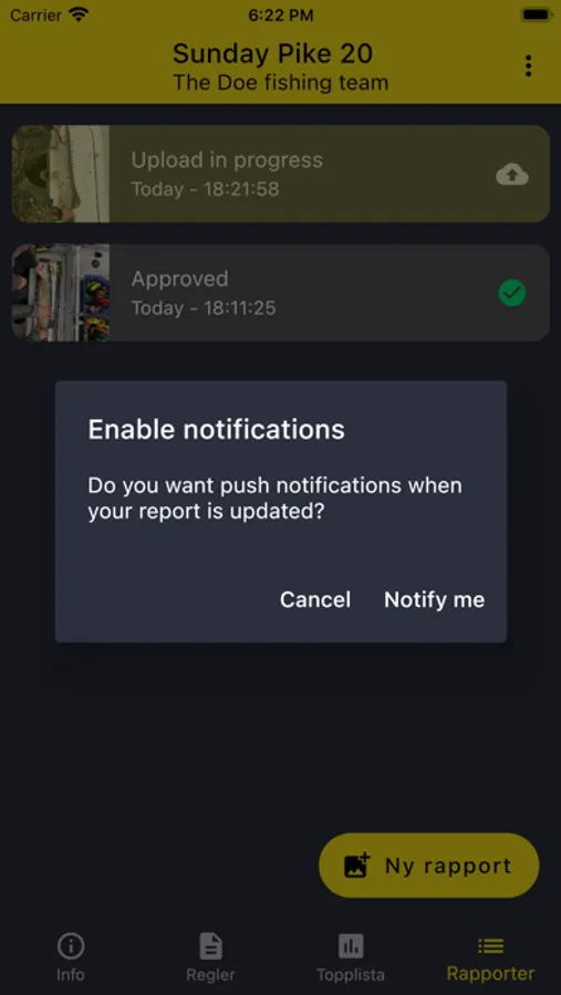 Fishy Live is a part of a modern, complete and easy to use system for organizing and managing sport fishing contests. Teams or individuals can report their catches live and have them reviewed by the contest organizers.