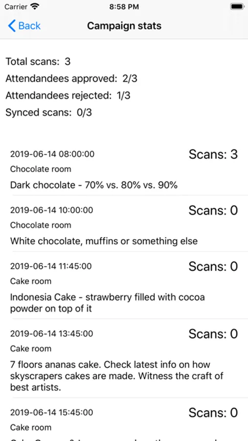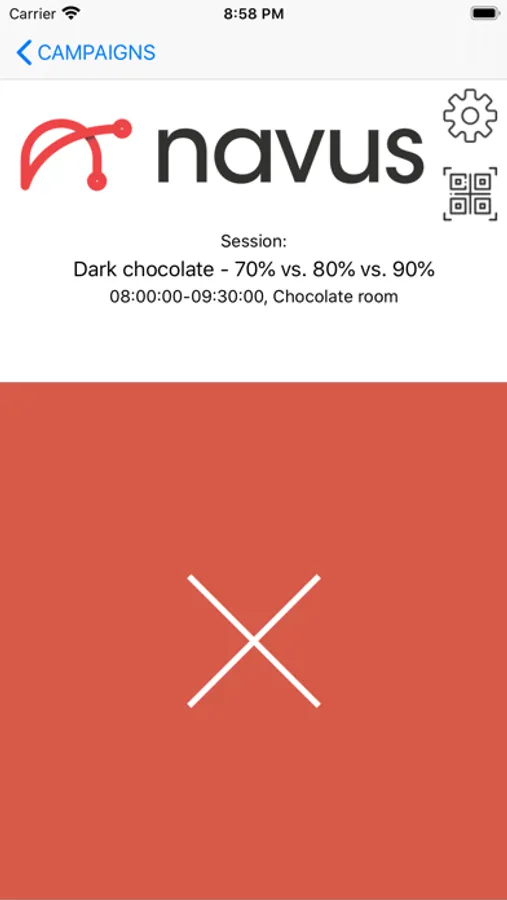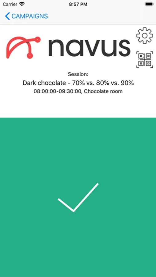 This application is for congress delegates attendance tracking. Configure your campaigns using Navus web configurator, and set campaign settings in mobile app. Now you are able to scan barcodes from delegates which attend chosen session.