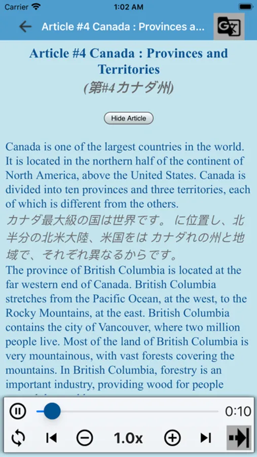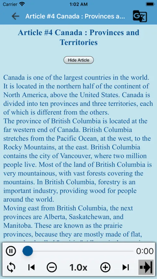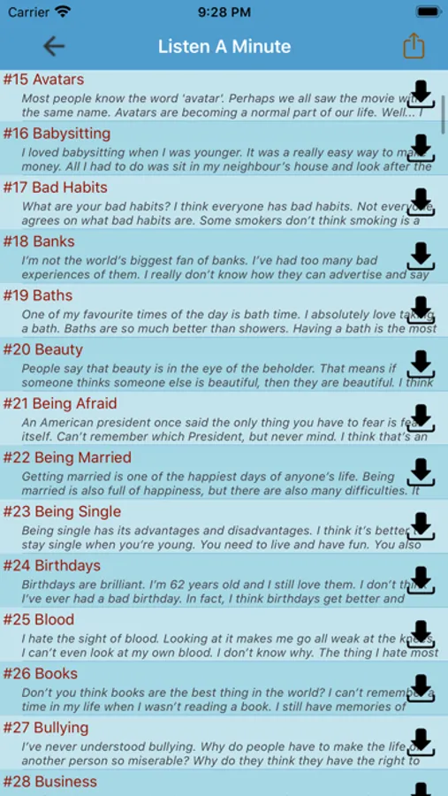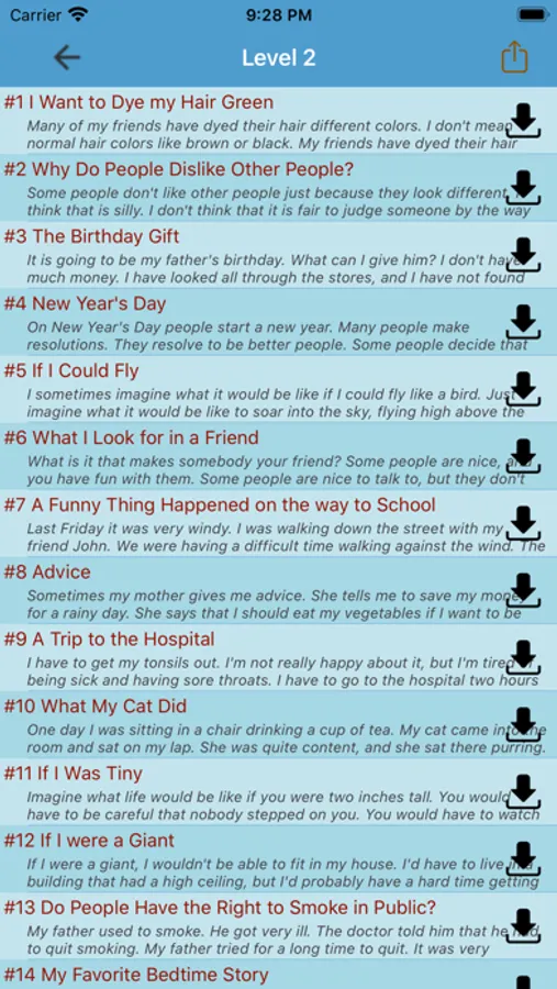 The app offers a variety of articles and scenarios, ranging from basic to advanced levels, making it suitable for learners of all levels. You'll find articles and audio tracks covering daily life topics, including everything from transportation to social networking, to help you improve your listening and speaking skills in a practical and relatable manner.