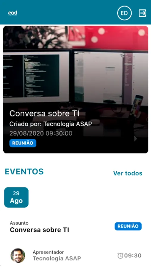 A plataforma de eventos Asap tem com finalidade facilitar o acesso dos participantes a palestras, seminários e workshops promovidos pela empresa.