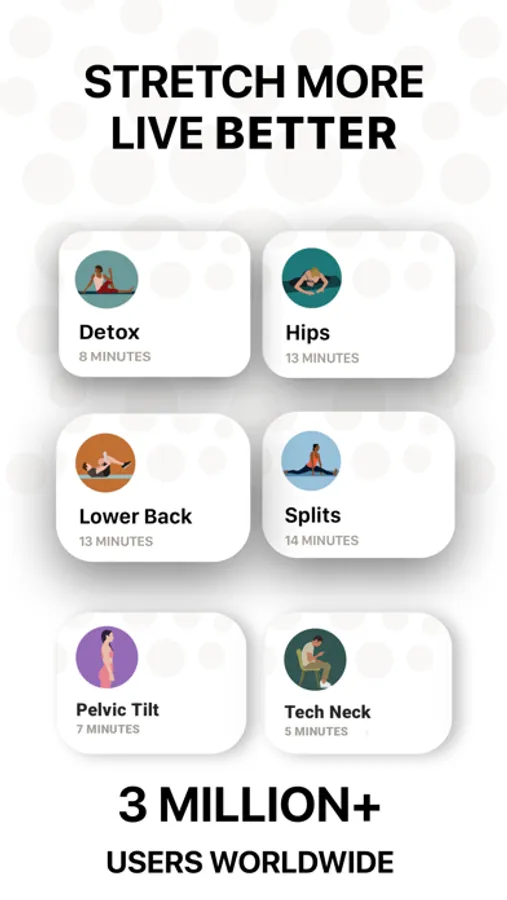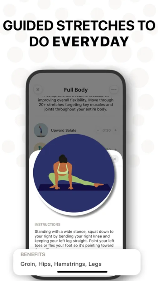 Create your own custom stretching routine suited to your specific needs. Choose from hundreds of stretches, yoga poses, and isometric exercises in our library.