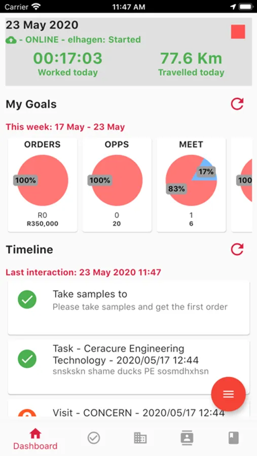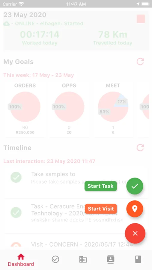 Salesfront Mobile Application allows to track the location of Sales Representatives while using the application. Sales Reps can record Visits and perform tasks assigned to them by their managers. Sales Reps can search for companies near him that are due for visits or overdue visits. Sales Reps can Search for Companies, Contacts and Products. Sales Reps can end their day and claim mileage travelled.