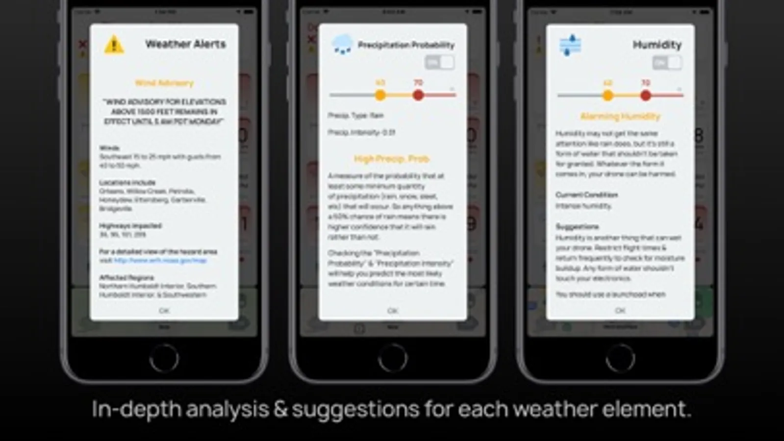 We take into account all weather & space elements that are important to drone flights (such as wind, satellites, No-Fly Zones, solar activity, etc.) and present them in a WELL DESIGNED INTERFACE. This allows you to view all the critical information in a single view without having to navigate to different pages.