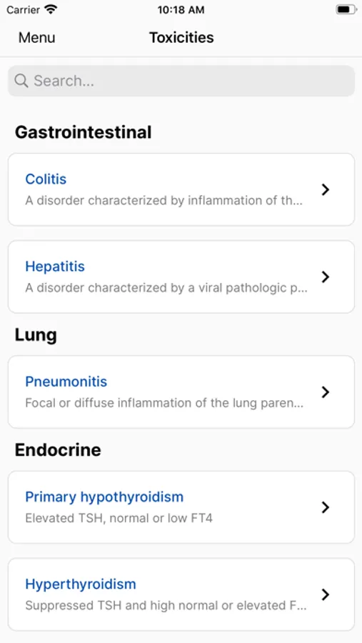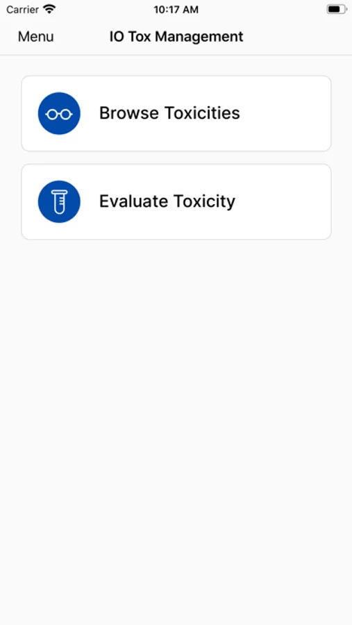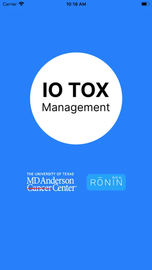 The IO Tox Management app is developed to help physicians treating patients with Immunotherapy and/or Immunotherapy side effects. It provides recommended management of common toxicities related to immunotherapy. This management is based off of a peer-reviewed journal article and is built with one of the articles authors.