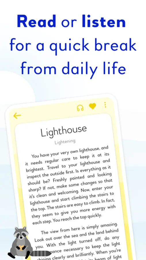 • Read or listen to our guided meditations in as little as a couple of minutes so you can easily fit them into your day.