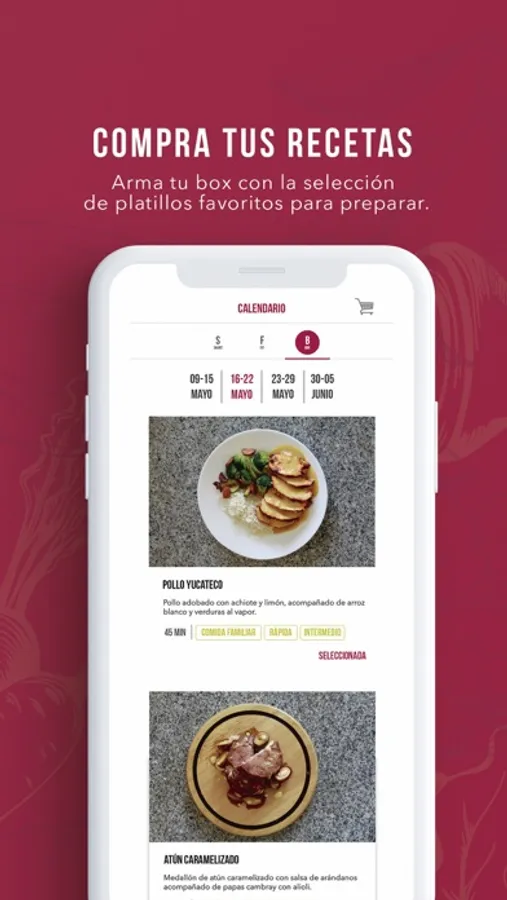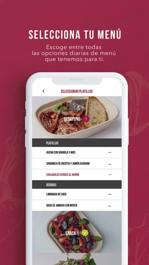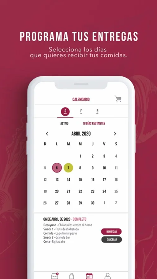 • Selecciona tu menú y programa tus entregas desde el calendario.